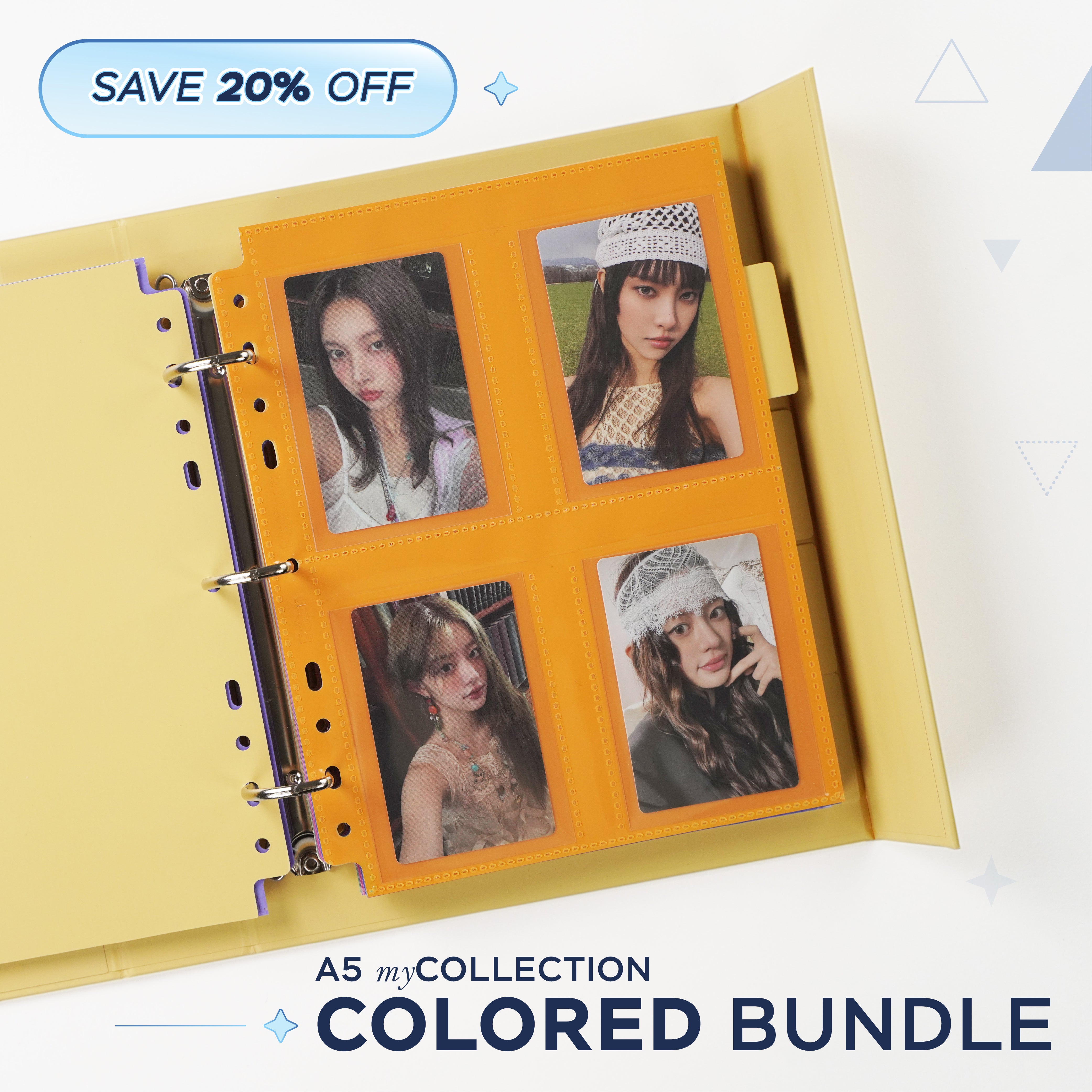 Choose any A5 myCOLLECTION Binder and add any three packs of Custom A5 Pocket Pages (Colored) to build your Coloured Bundle!